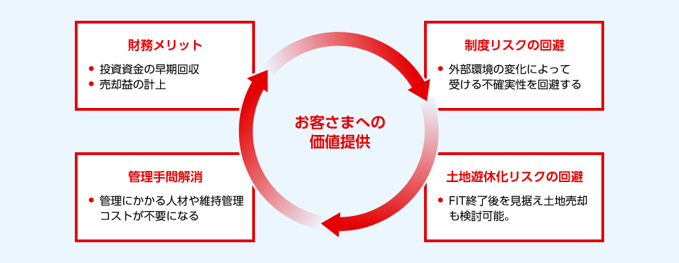 特に、中小規模の太陽光発電所を保有しているお客さまは、本業外で太陽光発電事業に取り組む先も多く、また、昨今の各種制度改定や銅線ケーブルの盗難、出力抑制の増加等、「このまま保有するのがいいのか・・・」と悩みを抱えているお客さまの声を多数伺っております。
